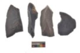 | Description / विवरण | There are n 4 utilized flake cores. There are multi directional irregular scar pattern on both dorsal and ventral face of the flake cores. One is tapering at one end and three have sharp edges. |