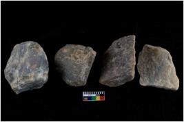 | Description / विवरण | Specimen of a cores with several broad fluted marks, the reverse bulb and platform can be seen. |