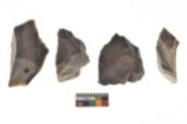 | Description / विवरण | There are n 4 utilized flake cores. There are multi directional irregular scar pattern on both dorsal and ventral face of the flake cores. One has sharp edge and three have blunted edges. |