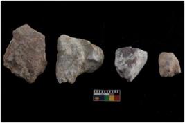 | Description / विवरण | Specimen of a cores with several broad fluted marks, the reverse bulb and platform can be seen. |