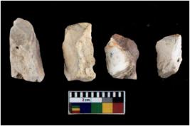 | Description / विवरण | Cores, with several broad fluted marks from almost all the sides indicating the detached blades from it. |