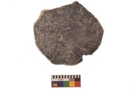 | Description / विवरण | Specimen of ground disc hopscotch made from a black ware. It has jagged edges with sign of chipping. It is rounded in shape. |
