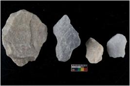 | Description / विवरण | Specimen of a cores with several broad fluted marks. The reverse bulb and platform can be seen |