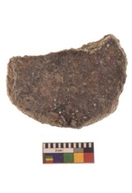 | Description / विवरण | Specimen of ground disc hopscotch made from a red ware. It is rounded in shape. |
