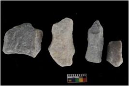 | Description / विवरण | Specimen of a cores with several broad fluted marks, the reverse bulb and platform can be seen. |