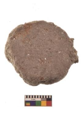 | Description / विवरण | Specimen of ground disc hopscotch made from a red ware. It has jagged edges with sign of chipping. It is rounded in shape. |