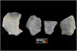 | Description / विवरण | Specimen of a cores with several broad fluted marks and some of them are tapering at one end. |
