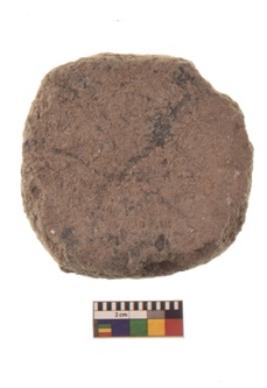 | Description / विवरण | Specimen of ground disc hopscotch made from a red ware. It has jagged edges with sign of chipping. It is rounded in shape. |
