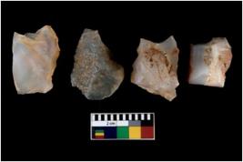 | Description / विवरण | There are n 4 utilized flake cores. There are multi directional irregular scar pattern on them. Three are tapering at one end and one has sharp edge. |