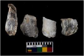 | Description / विवरण | There are n 4 flake cores. One is tapering at one end and three have blunted edges. |