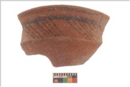 | Description / विवरण | Specimen of Potsherd with black decorative linear painting . |