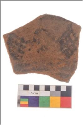 | Description / विवरण | Specimen of potsherd with black decorative geometric Net Pattern painting |
