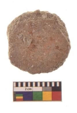 | Description / विवरण | A partially broken specimen of red ware disc with rounded and smooth edge and flat surface. It is having smooth surface areas other side is rough. |