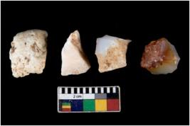 | Description / विवरण | There are n 4 utilized flake cores. There are multi directional irregular scar pattern on them. Three are tapering at one end and one has sharp edge. |