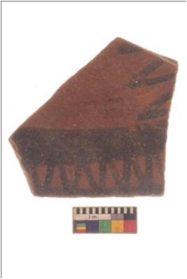 | Description / विवरण | Specimen of a Potsherd with black decorative geometric painting on it.It is set of two zigzag bands. |