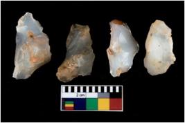 | Description / विवरण | There are n 4 utilized flake cores. There are multi directional irregular scar pattern on them. Three are tapering at one end and one has sharp edge. |