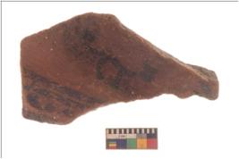 | Description / विवरण | Specimen of potsherd with black decorative animal Puppy motif painting . |
