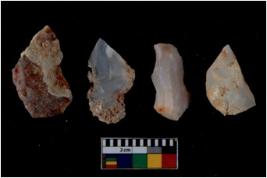 | Description / विवरण | There are n 4 flake cores. All of them are fully fluted flake cores without any trace of crested ridge flakes. Some are tapering at one end and some have sharp edges. |