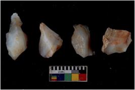 | Description / विवरण | There are n 4 flake cores. All of them are fully fluted flake cores without any trace of crested ridge flakes. Some are tapering at one end and some have sharp edges. |