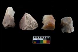 | Description / विवरण | There are n 4 flake cores. All of them are fully fluted flake cores without any trace of crested ridge flakes. Some have blunted edges and some have round edges. Few have flat base. |
