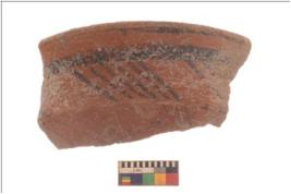 | Description / विवरण | Specimen of Potsherd with black decorative linear painting . |