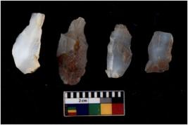 | Description / विवरण | There are n 4 flakes tool; there are large flakes with sides trimmed, Marks of secondary flaking are present on the both the faces. |