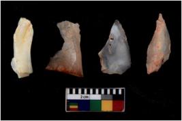 | Description / विवरण | There are n 4 flakes tool; there are large flakes with sides trimmed, Marks of secondary flaking are present on the both the faces. |