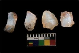 | Description / विवरण | There are n 4 utilized flake cores. There are multi directional irregular scar pattern on them. Three are tapering at one end and one has sharp edge. |