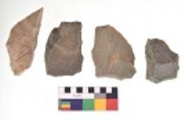 | Description / विवरण | There are n 4 utilized flake cores. There are multidirectional irregular dominant scar pattern on both dorsal and ventral face of the flake cores. One has sharp edges and three have blunted edges. |
