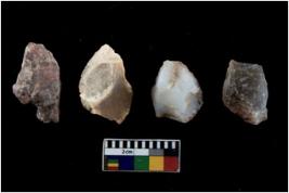 | Description / विवरण | There are n 4 flake cores. All of them are fully fluted flake cores without any trace of crested ridge flakes. Some have blunted edges and some have round edges. Few have flat base. |