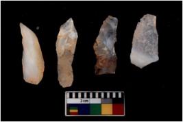 | Description / विवरण | There are n 4 flakes tool; there are large flakes with sides trimmed, Marks of secondary flaking are present on the both the faces. One is pointed functional top. |