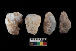 | Description / विवरण | There are n 4 utilized flake cores. There are multi directional irregular scar pattern on them. Two are tapering at one end and two have blunted edges. |