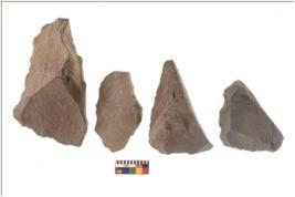 | Description / विवरण | There are n 4 flakes tool; there are large flakes with sides trimmed, Marks of secondary flaking are present on the both the faces. The dorsal is relatively flat. |