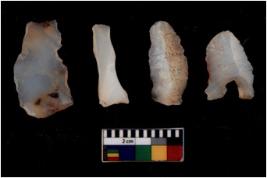 | Description / विवरण | There are n 4 Flake tool; There are multidirectional irregular scar pattern on them. few have blunt edges, Some of them are tapering |