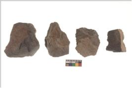 | Description / विवरण | There are n 4 flakes tool; there are flakes tool with prominent flaking marks. It made up of a large flakes with sides trimmed. |