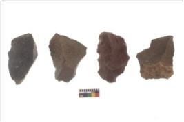 | Description / विवरण | There are n 4 flakes tool; there are flakes tool with prominent flaking marks. It made up of a large flakes with sides trimmed. |