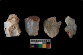 | Description / विवरण | There are n 4 utilized flake cores. There are multi directional irregular scar pattern on them. Three have flat base and one has blunted edge. |