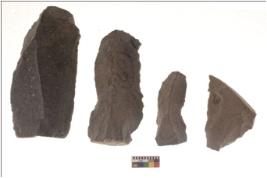 | Description / विवरण | There are n 4 flakes tool; there are flakes tool with prominent flaking marks. It made up of a large flakes with sides trimmed. |