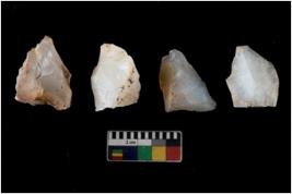 | Description / विवरण | There are n 4 utilized flake cores. There are multi directional irregular scar pattern on them. One has sharp edge and three have blunted edges. |