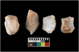 | Description / विवरण | There are n 4 utilized flake cores. There are multi directional irregular scar pattern on them. One has sharp edge and three have blunted edges. |