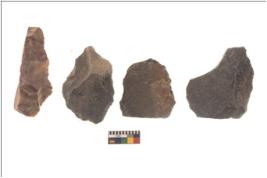 | Description / विवरण | There are n 4 flakes tool; there are large flakes with sides trimmed, Marks of secondary flaking are present on the both the faces. The dorsal is relatively flat. |