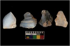 | Description / विवरण | There are n 4 utilized flake cores. There are multi directional irregular scar pattern on them. One has sharp edge and three have blunted edges. |
