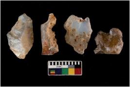 | Description / विवरण | There are n 4 utilized flake cores. There are multi directional irregular scar pattern on them. Three are tapering at one end and one has blunted edge. |