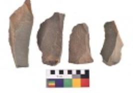 | Description / विवरण | There are n 4 utilized flake cores. There are multidirectional irregular dominant scar pattern on both dorsal and ventral face of the flake cores. Three are tapering at one end and one has sharp edges. |