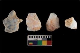 | Description / विवरण | There are n 4 utilized flake cores. There are multi directional irregular scar pattern on them. One has sharp edge and three have blunted edges. |