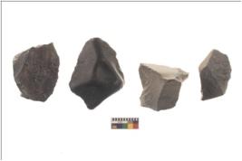 | Description / विवरण | There are n 4 flakes tool; there are flakes tool with prominent flaking marks. It made up of a large flakes with sides trimmed. |