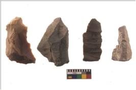 | Description / विवरण | There are n 4 flakes tool; there are large flakes with sides trimmed, Marks of secondary flaking are present on the both the faces. The dorsal is relatively flat. |