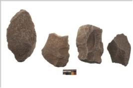 | Description / विवरण | There are n 4 flakes tool; there are large flakes with sides trimmed, Marks of secondary flaking are present on the both the faces. The dorsal is relatively flat. |