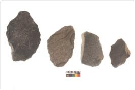| Description / विवरण | There are n 4 flakes tool; there are large flakes with sides trimmed, Marks of secondary flaking are present on the both the faces. The dorsal is relatively flat. |