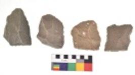 | Description / विवरण | There are n 4 utilized flake cores. There are multidirectional irregular dominant scar pattern on both dorsal and ventral face of the flake cores. Two have blunted edges and two have round edges. |